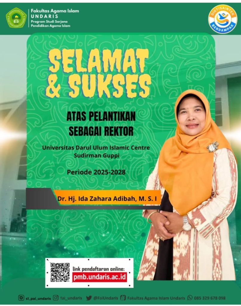 Semoga Allah SWT senantiasa memberikan kekuatan, kebijaksanaan, dan keberkahan kepada Dr. Hj. Ida Zahara Adibah, M.S.I. dalam menjalankan amanah mulia ini. Mari bersama-sama melangkah menuju UNDARIS yang semakin maju, berintegritas, dan memberikan manfaat nyata bagi agama, bangsa, dan peradaban.